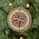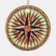Round ornament with the image of a vintage Compass Rose on the front and a quote about travel on the back by St. Augustine.