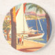 Special Vintage European Travel Advertisements - Beach, village, people, palm trees, blue sea and sky illustration