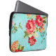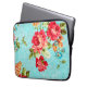 A beautiful shabby chic vintage cottage red & orange p roses set on a turquoise blue background flower floral pattern feminine girly laptop sleeve. Protect your computer laptop with our custom stylish sleeves. Sizes available for 10 inch, 13-14 inch, and 15-17 inch laptops. Our lightweight and water resistant sleeves are top loading zippered enclosure Visit us at our shop for a large assortment of floral laptop zippered sleeves in a large variety of colour schemes
