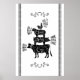 This poster has a vintage country farmhouse stacked farm animals print in all black. You have the classic farm animals of a cow, a pig, a sheep and a rooster on top with antique scroll work and the animals name inside in script font. There are three bands of colour on each side just like vintage tea towels. This poster is a great farmhouse design to brighten up any kitchen or dining room. It’s also a great house warming gift for anyone that loves country farmhouse decor.