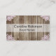 A Customisable Business Card with a Country Rustic Vintage Wood Pink Lace Design, Shown here with an Event Planner Profession, but