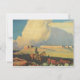 Open Range (1942) by Maynard Dixon is a vintage American West fine art landscape painting. A cowboy rancher riding his horse on the plains of the southwest. He is herding his cows, bulls and cattle on the prairie. Large white clouds fill the sky over the open farm fields and the mesas.