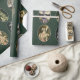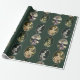 This wrapping paper is illustrated with victorian animal characters set in ovals on a green background.