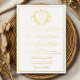 Elegant classic formal vintage crest monogrammed real gold foil white traditional luxury frame border wedding invitation featuring a classy hand written lettered calligraphy script. +++++++++++ Suitable for timeless stylish old money luxe themed weddings.
