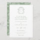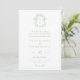 Sage Green Monogram Crest, wedding invitation. Vintage inspired Regency-Era baroque line art monogram crest. Features, an elegant sage colour typography design style mix of script and bold type. Chinoiserie style garden pattern backing.