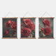 Vintage Crimson Roses Triptych - Moody Botanical Hanging Tapestry