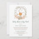 For those times when it is not possible to be together in person, a Baby Shower By Mail is a way to let the happy parents to know they are still very much in everyone's thoughts. This design has a motif of an adorable baby boy fox in blue neck tie within a circular border of botanicals at the top in shades of cream and blush on a white backdrop. You can easily personalise the text beneath to your own requirements. You can also change the fonts and text colours if you wish via the Click to Customise Further option as well as the background colours of either side.