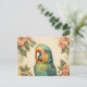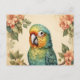 Vintage Cute Parakeet Budgie Portrait Flowers Postcard