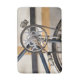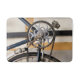 A photographic design of the parts of a vintage bike showing pedals and chain.