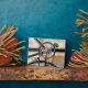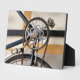 A photographic design of the parts of a vintage bike showing pedals and chain.