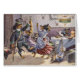 Vintage artwork by Arthur Thiele depicts a raucous scene at a Dachshund family's home. Father returns from a successful hunt and displays the rabbit he got. The mother dog throws her paws into the air in celebration while one of the pups jumps up on the father. Meanwhile in the background another puppy is on the dining table sneaking some food, while another has fallen off the table, pulling food on plates onto the floor, and is tangled up in the tablecloth. The family's cat looks on from the safety of the floor. The German artist, Carl Robert Arthur Thiele (1860-1936) commonly went by the name Arthur Thiele. He was an illustrator of books, sheet music and postcards. He was famous for his comical anthropomorphic animals dressed in clothing and depicted in human-like scenes. Dachshunds were a favourite subject of his. In addition to animals, other subjects he illustrated were sports postcards, vegetables brought to life, snowmen, bathing beauties, and WW1 era propaganda postcards. The Internet is full of references confusing Carl Robert Arthur Thiele with another German painter of his time named Julius Arthur Thiele who painted landscapes. They are not the same artist. This card is blank inside for your own message.