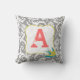 Grey Teal Yellow Coral Floral Monogram Damask Farmhouse Pillow