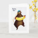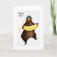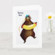 Vintage artwork of a playful trained bear dancing to the beat of his own music as he plays a squeezebox. Card is blank inside for your message.