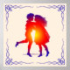 Vintage Dancing Couple dark purple silhouette antique style dancing girl and boy on tender ivory background and floral frame