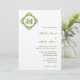 Vintage decay green leaves frame monogram wedding invitation
