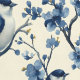 Vintage Delft Blue Little Birds Chinoiserie Wallpaper