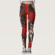 These leggings are illustrated with a vintage devil lady dancer set before a red background with a Gothic skull moon and stars.