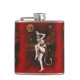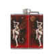 This flask is illustrated with a vintage Gothic devil lady dancer on a red background.