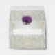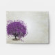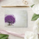 Whimsical Magical Tree of Love Purple Heart Leaf Tree on Tea Stained Warm Silver Toned Metallic Paper with an Overlay of Antique Sheet Music and some cute little swirly designs to enhance the roots of love on this unique woodland wedding invitation...