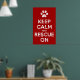 It's the very cute, classic, "Keep Calm And Rescue On" poster. Featuring a heart above the words, this poster looks great on any wall! Grab yours today, and support animal rescue in style.