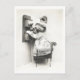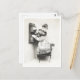 This postcard is a reproduction of a vintage black-and-white photo showing a dog dressed in clothes making a telephone call. Why? No clue.