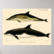 Vintage illustration marine life dolphins by Joseph Smit. The top dolphin is a Delphinus delphis; short-beaked saddle-backed dolphin. The lower dolphin is a Delphinus tursio; a variety of bottle-nosed dolphin that looks similar to the orca, or killer whale.