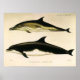 Vintage illustration marine life dolphins by Joseph Smit. The top dolphin is a Delphinus delphis; short-beaked saddle-backed dolphin. The lower dolphin is a Delphinus tursio; a variety of bottle-nosed dolphin that looks similar to the orca, or killer whale.