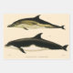 Vintage illustration marine life dolphins by Joseph Smit. The top dolphin is a Delphinus delphis; short-beaked saddle-backed dolphin. The lower dolphin is a Delphinus tursio; a variety of bottle-nosed dolphin that looks similar to the orca, or killer whale.