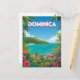 Escape to paradise with this vintage-style postcard featuring the breathtaking beauty of Dominica. The artwork captures the island’s lush, tropical landscape, from vibrant flowers and towering palm trees to the clear blue waters of the bay. The retro design evokes a classic, carefree island vacation, making it perfect for a souvenir, a note to a friend, or a beautiful piece of art for your home.