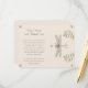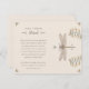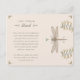 Add a touch of natural elegance to your wedding with this beautifully designed information card featuring a detailed dragonfly illustration surrounded by delicate botanical elements. The design showcases soft beige and cream tones, complemented by muted green and golden yellow floral accents. Graceful sprigs of yellow blossoms and leafy vines frame the dragonfly, symbolising harmony and connection. The back of the card offers ample space for additional wedding details, ensuring guests are well-informed. This card is ideal for nature-inspired, rustic, or vintage-themed weddings, blending charm and practicality in one timeless design.