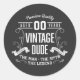 Premium quality aged XX years, Vintage dude the man, the myth the legend in white mixed cursive and uppercase sans font with scrolls with the words wisdom and experience in a vintage style. Commemorate any birthday, use the templates to enter the age in matching white font.