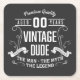 Vintage Dude Custom Age Square Paper Coaster