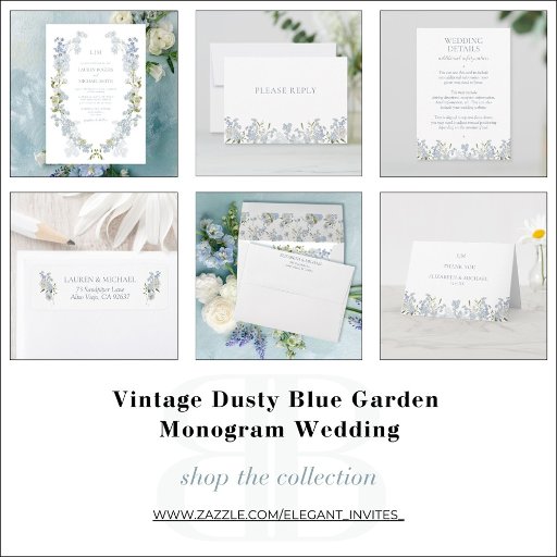 Vintage Dusty Blue Garden Monogram Wedding Invitation