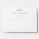 This elegant vintage-inspired white 5x7 wedding envelope features a stunning Baroque dusty blue design with intricate French Rococo floral details. The ornate, romantic gold rope heart motif inside adds a touch of luxury, while the return address on the top flap completes the timeless, sophisticated look. Perfect for a classic, opulent wedding.