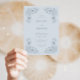 This Vintage Dusty Blue Wedding Invitation is a masterpiece of timeless elegance. This invitation exudes simplicity and vintage charm, featuring a dusty blue background adorned with delicate dusty grey-blue flowers arranged in a classic frame. The coordinating pattern on the back adds an extra layer of sophistication, making it perfect for couples seeking a refined and elegant aesthetic for their wedding.
