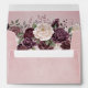 This gorgeous dusty rose envelope opens to a luscious bouquet of large roses in warm shades of pink and burgundy.