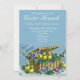 Personalise this Easter-designed invitation with your brunch information or customise it for another occasion. This invitation was designed from a vintage easter basket with baby chickens and viola purple flowers. The background is a spring blue colour with white text.