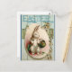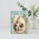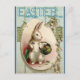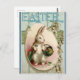 A Vintage Easter Bunny Postcard with wood background and flowers.