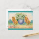 This sweet postcard features a vintage Easter design, of two chicks carrying an egg full of flowers, with the text "Easter Greetings". The border colours can be customised to fit your needs.