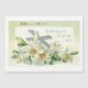 Elegant vintage design featuring silver cross, spray of Easter lilies, Happy Easter greeting and Bible verse in gradient green border.