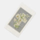A Vintage Illustration of a branch of creamy white lilies over a white floral cross. Greeting: A Happy Easter. Image of a Vintage Easter Postcard on a silver grey background.