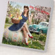 Brighten up your gear with this vibrant vinyl sticker! Featuring a retro pin-up girl on a giant Easter egg, it brings a 1950s spring vibe to any surface.