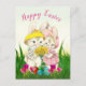 Vintage Easter Rabbits in Flower Garden Holiday Postcard