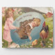 Sweet young Victorian girl and boy on a vintage / antique postcard wishing Easter Greetings. I have custom restored the image.