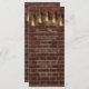 Vintage Edison-style lightbulb images are illuminated in front of a faux brick wall to shine their golden light on a unique industrial style wedding or event menu rack card. Perfect for the modern or hipster bride or couple and fits perfectly with a loft or warehouse wedding. Available with matching products.