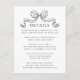 Complete your Vintage Elegance Bow wedding suite with our coordinating details enclosure card, a refined addition featuring the same exquisite black line art bow. This card serves as a comprehensive guide to essential wedding details, including hotel accommodations, wedding reception dinner information, and your personalised wedding website URL. The classic black and white design ensures a seamless integration with the overall aesthetic. Elevate your guests' experience with the Vintage Elegance Black Bow Details Card, where every piece of information is presented with the same timeless grace that defines your special day. Ensure that your loved ones are well-informed and ready to celebrate the enchanting moments of your wedding festivities.