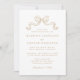 Our Vintage Elegance Bow wedding invitation is a perfect blend of timeless charm and modern sophistication. The elegant line art illustration of a bow at the top, paired with gold lettering and delicate calligraphy script accents, creates a classic yet contemporary design. Ideal for couples seeking a vintage touch for their special day, this invitation exudes grace and formality. The contrast of gold and white ensures a luxurious and memorable experience for your guests. Make a statement that transcends time with our Vintage Elegance Bow Wedding Invitation – a beautifully crafted introduction to the timeless romance of your wedding day.