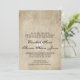 This custom wedding invitation is the perfect combination of traditional and trendy. The distressed vintage background is perfect for a rustic or vintage themed wedding; add a lace accent and twine bow for a classic, romantic touch. Coordinates with full collection of matching Save the Dates, RSVP cards, custom postage, and more! NOTE - This is a high-quality image of lace, & ribbon; this invitation does not contain actual lace or ribbon. Thanks!