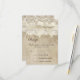 This custom RSVP card is the perfect combination of traditional and trendy. The distressed vintage background is perfect for a rustic or vintage themed wedding and the lace-look accent adds a classic, romantic touch. Coordinates with full collection of matching Save the Dates, RSVP cards, custom postage, and more! NOTE - This is a high-quality image of lace, & ribbon; this invitation does not contain actual lace or ribbon. Thanks!