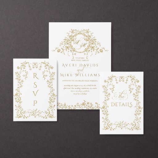 Vintage Eleganse Golden Flowers Frame Wedding Invitation